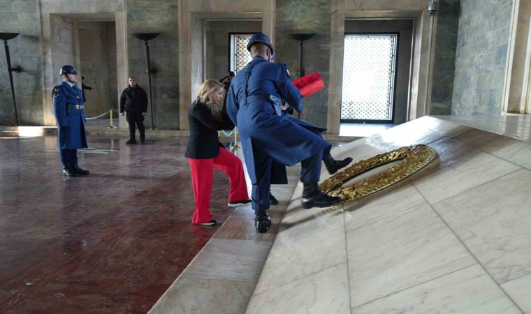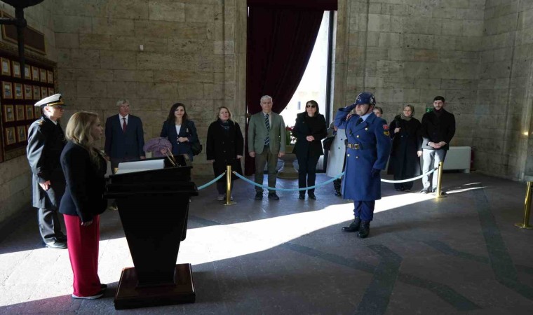 Muhabirler Derneği Başkanı Berrin Yücesan ve beraberindeki heyet, Anıtkabir’i ziyaret etti. Atatürk’ün mozolesine çelenk bırakılmasının ardından saygı duruşunda bulunuldu. Anıtkabir merdivenlerinde hatıra fotoğrafı çektiren heyet, Anıtkabir Özel Defteri’ni imzalamak üzere Misak-ı Milli Kulesi’ne geçti. Muhabirler Derneği adına defteri imzalayan Yücesan, deftere şunları yazdı:
