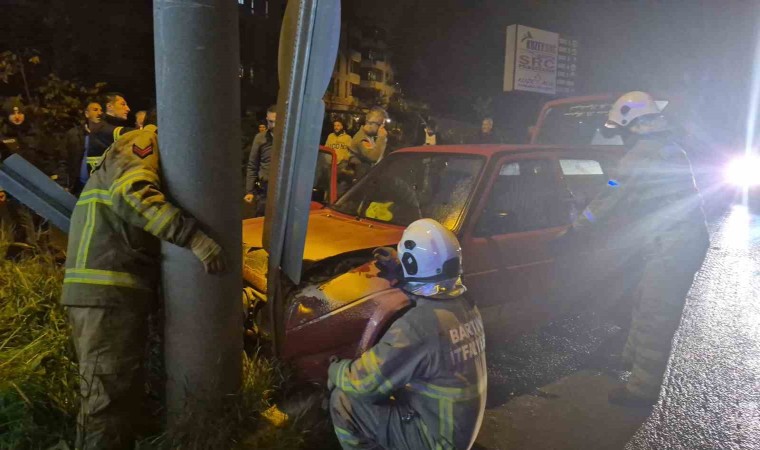 Bartın’da kontrolden çıkan araç refüje çıkarak yüksek gerilim hattı direğine çarptı. Kaza yapan araçtan çıkan dumanları fark eden gazetecilerin ihbarı ile olay yerinde panik yaşandı. Hemen dumanları söndüren polisler, kazadan sonra kaçan sürücüyü bularak gözaltına aldı.