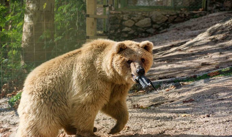 Dronla burada da ilgilenen ayı, diğer ayıların tehlike verebileceğini sezerek dronu ağzıyla kafesine taşıdı. Dron daha sonra burada Doğal Yaşam Parkı görevlileri tarafından ağzından alınarak kurtarıldı. Ayının dronu ağzına alarak su dolu havuzdan çıkarma anları ise kameralara yansıdı.