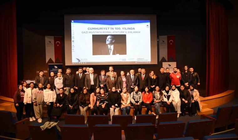 Daha sonra Düzce Üniversitesi Cumhuriyet Konferans Salonu’nda, Fen Edebiyat Fakültesi tarafından düzenlenen “Cumhuriyet’in 100.Yılında Gazi Mustafa Kemal Atatürk’ü Anlamak” adlı panel gerçekleştirildi. Panel öncesinde Düzce Üniversitesi Eğitim Fakültesi Türkçe Bölümü öğrencileri tarafından şiir dinletisi de icra edildi. Öğrenciler, Atatürk’e ithaf edilen şiirleri başarıyla seslendirdi. Program, panel bölümüyle devam etti.