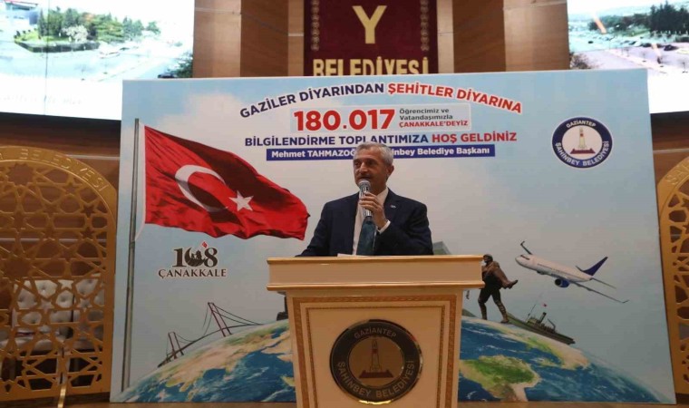 Şahinbey Belediye Başkanı Mehmet Tahmazoğlu, Gazi torunlarının şehitler diyarını ziyaret etmeye devam ettiklerini belirterek, “Çanakkale bizim için çok önemli. Şahinbey Belediyesi olarak ‘Gaziler Diyarından Şehitler Diyarına’ projesi gerçekleştirdik. Çanakkale ziyaretlerinde 170 bin 737 vatandaşımızı ve öğrencimizi ecdatla buluşturduk. Türkiye’de uçakla gençleri Çanakkale’ye götüren başka bir proje yok. Çanakkale’de ecdadımız yedi düvele karşı çok büyük mücadele vermiş. İmanlı göğsünü siper etmiş. 15 yaşındaki gençler vatan elden gitmesin, ezanımız dinmesin diyerek canlarını seve seve feda etmişler. Biz de onlara teşekkür ziyareti olarak Çanakkale ziyaretlerini düzenliyoruz. Gençlerimiz oraya giderek tarihi yerinde görüp ecdadımız teşekkür ziyareti yapıp dönüyorlar. Bu vatan toprakları kolay kazanılmadı. Dünya’nın birçok yeri cadı kazan gibi kaynarken biz ülkemizde bayrağımızın gölgesinde, devletimizin gücüyle huzur ve mutluluk içerisinde yaşıyoruz. Vatanımızın milletimizin kıymetini çok iyi bilmeliyiz. Çanakkale’ye öğrencilerimizi ve vatandaşlarımızı bu nedenle götürüyoruz” diye konuştu.