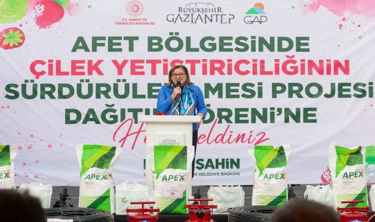 Kahramanmaraş merkezli şiddetli depremlerden etkilenen Nurdağı ve İslahiye’de çiftçilerin gelirinin arttırılması ve üretimin tekrardan sağlıklı bir şekilde sağlanması amacıyla Büyükşehir Belediyesi’nin destekleri devam ediyor. Büyükşehir Belediyesi Tarımsal Hizmetler Daire Başkanlığı ile GAP Bölge Kalkınma İdaresi Başkanlığı iş birliğinde bölgede tarımsal faaliyetlerin sürdürülebilirliği için çilek üretiminin yaygınlaştırılması amacıyla başlatılan yeni destek projesinin dağıtım töreni Nurdağı’nda yapıldı.