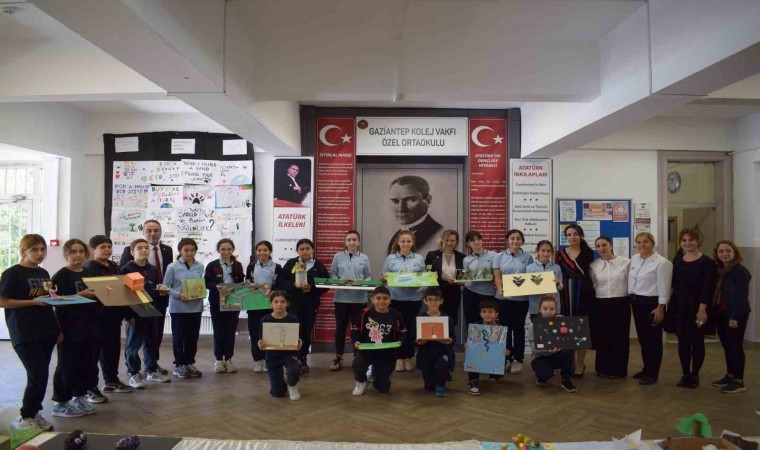 Türk dilinin zenginliğinin yanı sıra deyimler ve atasözlerinin daha iyi anlaşılarak dilin zenginliğinin sergilenmesi için önemli bir etkinliğe imza atan Gaziantep Kolej Vakfı Özel Ortaokulu öğrencilerinin sergisi büyük ilgi gördü.
