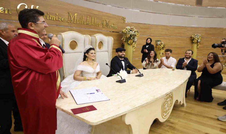 Gelinin babası Hasan Güneş, “Çocukların mutluluğu için sizin de katkıda bulunmanız bizleri mutlu etti. İnşallah bundan sonraki hizmetlerinizde daha güzel işlere imza atarsınız. Bugün buraya gelip çocuklarımızı ve bizleri yalnız bırakmadınız. Bize çok büyük destek oldunuz, teşekkür ederiz” dedi. Taşdelen Nikah Sarayı’nda düzenlenen törene çiftin ailesi ve yakın akrabaları katıldı. Nikah sonunda Başkan Çerkez evlilik cüzdanını gelin Ayşenur Güneş’e teslim etti.