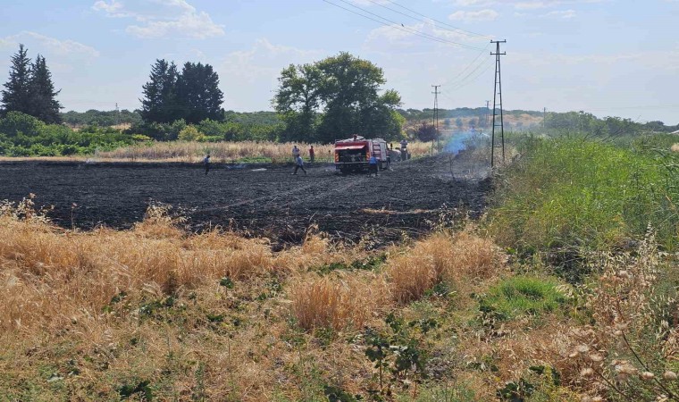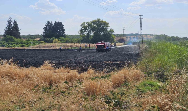 Yangın nedeniyle 10 dönüm ekili alan yanarken itfaiye ekiplerinin zamanında müdahalesiyle 30 dönüm buğday yanmaktan kurtarıldı.