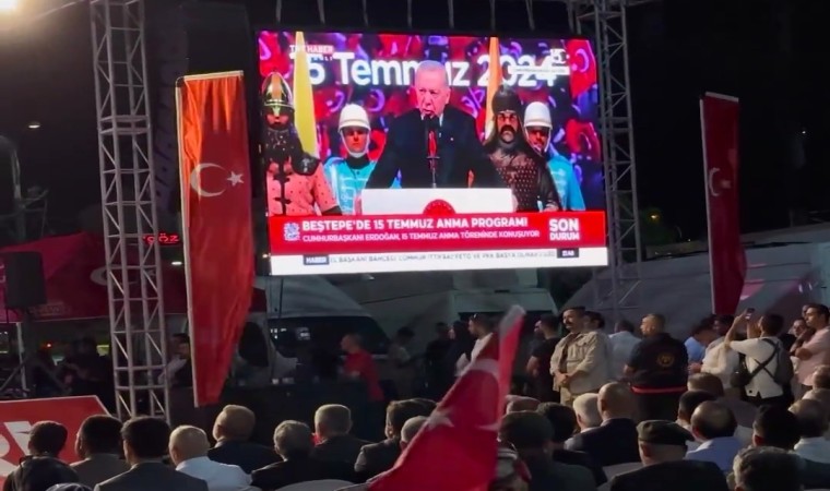 Alanda toplanan yüzlerce vatandaş ellerindeki bayraklarıyla sloganlar eşliğinde Cumhurbaşkanı Recep Tayyip Erdoğan’ın açıklamalarını dinledi. Kum sanatı, konser ve sinevizyon gösterisiyle devam eden program, 00.13’te sela okunmasıyla sona erdi.