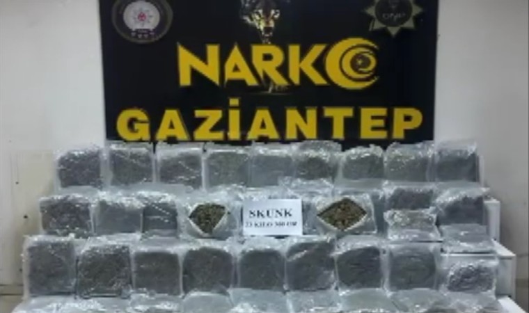 Gaziantep Emniyet Müdürlüğü Narkotik Suçlarla Mücadele ekipleri, Cumhuriyet Başsavcılığı koordinesinde şüphe üzerine bir aracı durdurdu. Durdurulan araçta yapılan aramalarda bagaj kısmında gizlenmiş halde 28 kilo 600 gram skunk ele geçirildi. Olayla ilgili 2 şüpheli şahıs yakalandı.