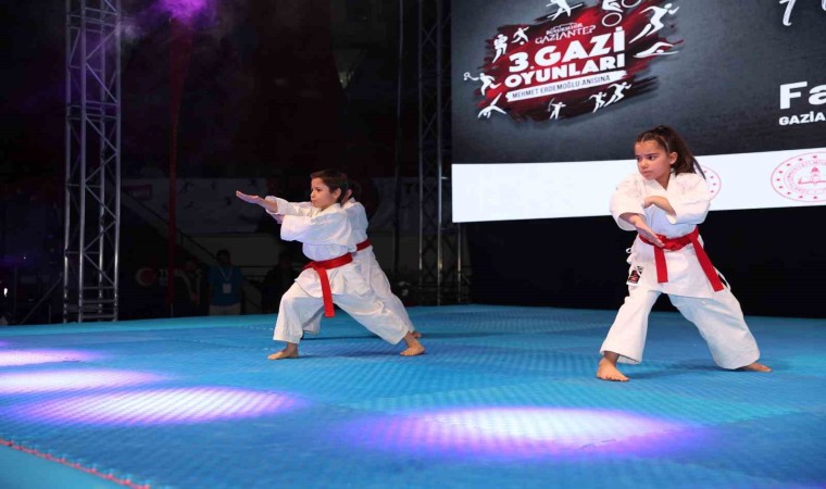 Şahinbey Kapalı Spor Salonu’nda yapılan açılış töreni, 4’ü engelli olmak üzere toplam 17 branşta 74 kategoride ter dökecek yüzlerce sporcunun katılımı ve hazırlanan çeşitli gösterilerle renklendi. Okul bayrakları ve flamalarının geçişiyle başlayan açılış töreni, Gazi Oyunları branş tanıtım ve Erdemoğlu Ailesi’ni tanıtan video gösterimiyle devam etti. Yapılan çeşitli gösterimlerin ardından protokol konuşmasına geçildi. Protokol konuşmalarının ardından nefes kesen gösterilerle program devam etti. İlk olarak minikler kata gösterisi yapıldı. Devamında ise akrobasi ve basketbol şovlarıyla nefes kesen performanslar sergilendi.