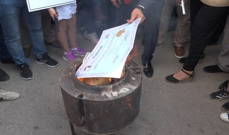 Oda başkanı basın açıklaması yaptıktan sonra ruhsatını yaktı