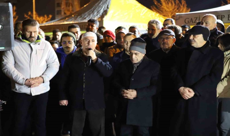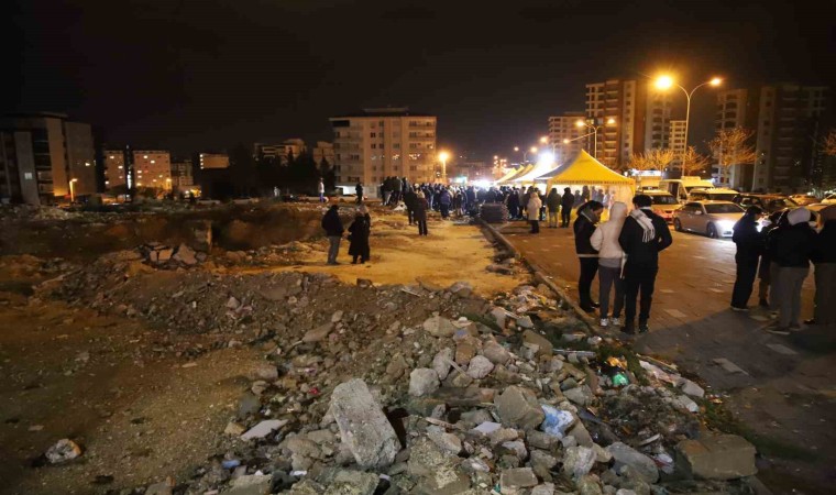 6 Şubat depremlerinde yıkılan ve 134 kişiye mezar olan Gaziantep’teki Ayşe-Mehmet Polat sitesinde depremin yıl dönümü dolayısıyla 04.17’de ölenler için Kuran-ı Kerim okutuldu.