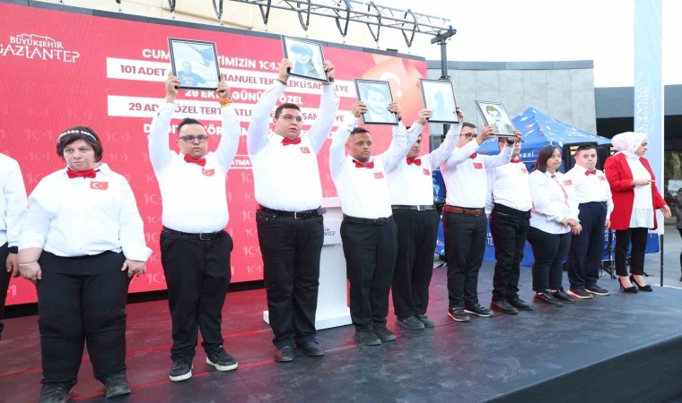 Gaziantep Büyükşehir Belediyesi’nin medikal malzeme dağıtım töreninde down sendromlu bireylerin TUSAŞ şehitlerini anması duygusal anların yaşanmasına neden oldu.