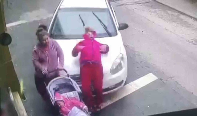 Feci kaza anları ise güvenlik kamerasına saniye saniye yansıdı. Görüntülerde, ara sokaktan caddeye dönen beyaz otomobilin, hızlı bir şekilde kaldırıma çıkarak kaldırımda yürüyen 2 kadın ile içerisinde bebek bulunan bebek arabasına çarpma ile olay sonrası kadın sürücünün panikle araçtan inme anları anbean yer aldı.
