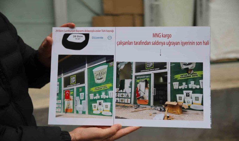 Açıklamalarda bulunan iş yeri sahibi Halit Haliloğlu, “Gaziantep’te karton bardak imalatı yapıyoruz. Türkiye’nin çeşitli yerlerine gönderiyoruz. MNG Kargo şirketiyle dağıtım anlaşmamız var. Geçtiğimiz cumartesi günü MNG Kargo çalışanlarıyla personelimiz arasında ’iki defa geldim, yoktunuz’ muhabbetinden dolayı tartışma yaşanmıştı. Daha sonra tartışma büyüyünce ben ricada bulundum. Kargocu kurye ile görüştüm ve çok agresifti, ’bir daha gelemem’ dedi. Ben de dünyanın sonu değil, 3. defa gel ya da bir taksi ile gönder diye ricada bulundum. Telefonu yüzümüze kapattı ve telefonu kapattıktan sonra buraya gelerek personelimizi rehin aldı. Dükkanın önüne gelip personelimin telefonu ile beni arayarak ‘Siz buraya gelmezseniz birazdan bu dükkanı yakacağım, bu çocuğu da öldüreceğim’ dedikten sonra komşumuz personelimizi kuryenin elinden alarak iş yerlerine götürerek kurtarıyor. Daha sonra iş yerimizin camını çerçevesini kırarak içerideki gıda maddelerini sokağa atarak ve hıncını alamayarak içeriye kadar giriyorlar” dedi.