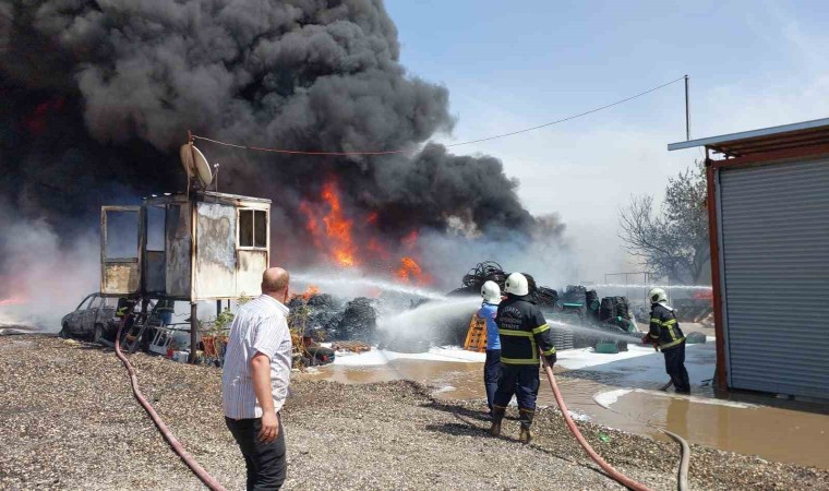 Gaziantep’in Nizip ilçesinde henüz bilinmeyen bir nedenle plastik su borularının satıldığı iş yerinde yangın çıktı. Yangın kısa sürede büyürken çevrede bulunan park halindeki araçlara sıçradı.