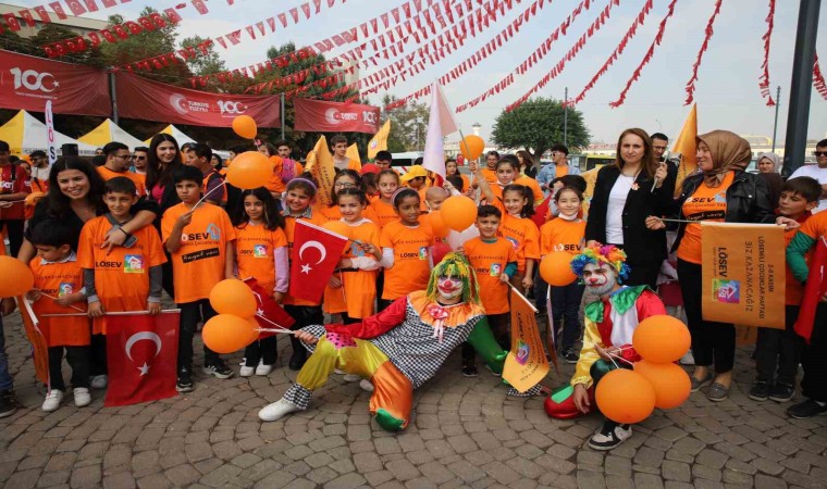 Gaziantep’te, ’2-8 Kasım Lösemili Çocuklar Haftası’nda lösemili çocuklara dikkat çekmek için turuncu renkli flama, bayrak, kıyafet ve balonlarla farkındalık korteji yapıldı.