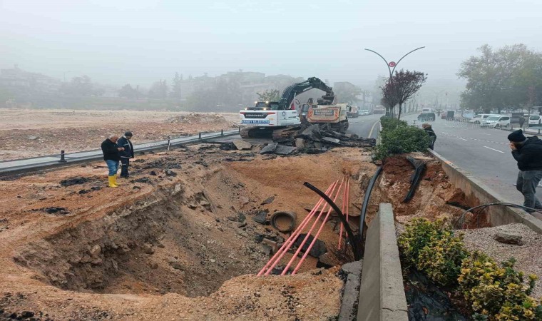 Çökmenin etrafına şerit ve bariyer çeken ekipler, oluşan hasarı gidermek ve yolu tekrar trafiğe açmak için çalışma başlattı.