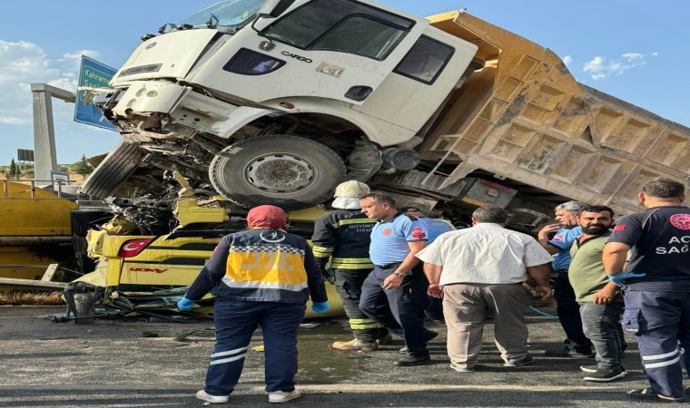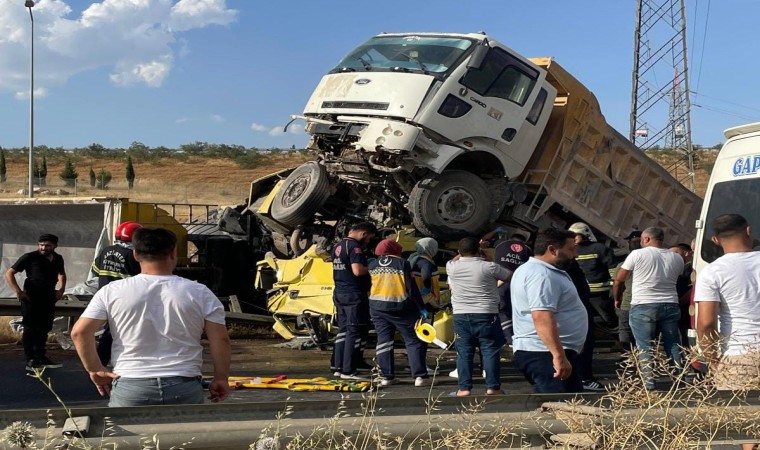 Gaziantep’te kamyon ile tırın çarpışması sonucu meydana gelen kazada 1 kişi hayatını kaybetti, 1’i ağır 2 kişi yaralandı. Kaza sonucu kamyonun tırın üzerine çıkması ise dikkat çekti.