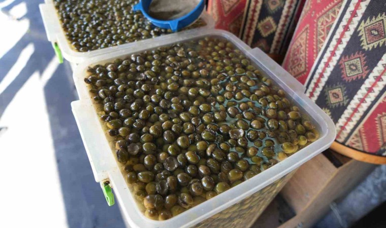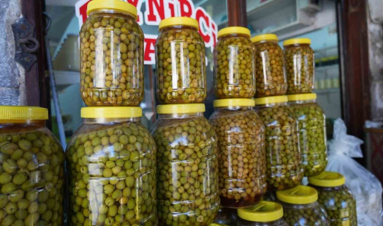 Gaziantep’te hasadına başlanan sofralık yeşil zeytinler tezgahlardaki yerini aldı.