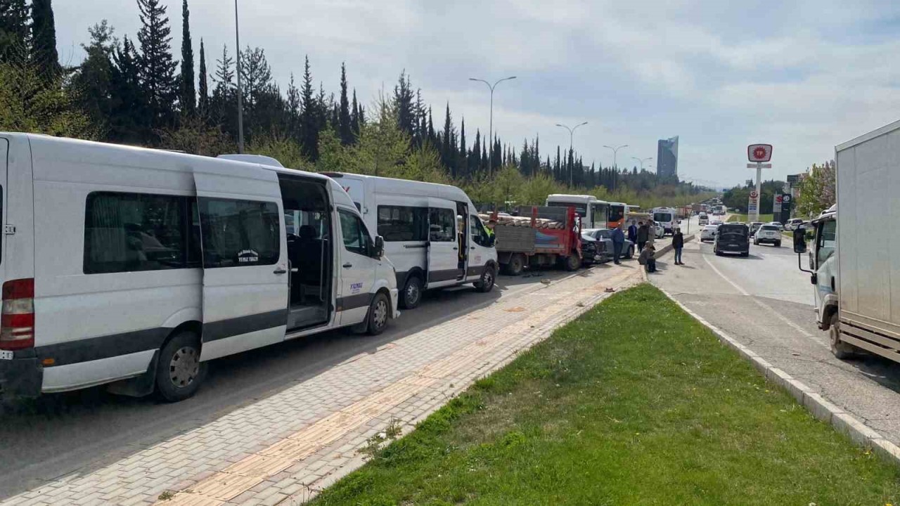 GAZİANTEP’TE MEYDANA GELEN 3 SERVİS 1 KAMYONET VE 4 ARACIN KARIŞTIĞI ZİNCİRLEME TRAFİK KAZASINDA 1 KİŞİ YARALANDI.