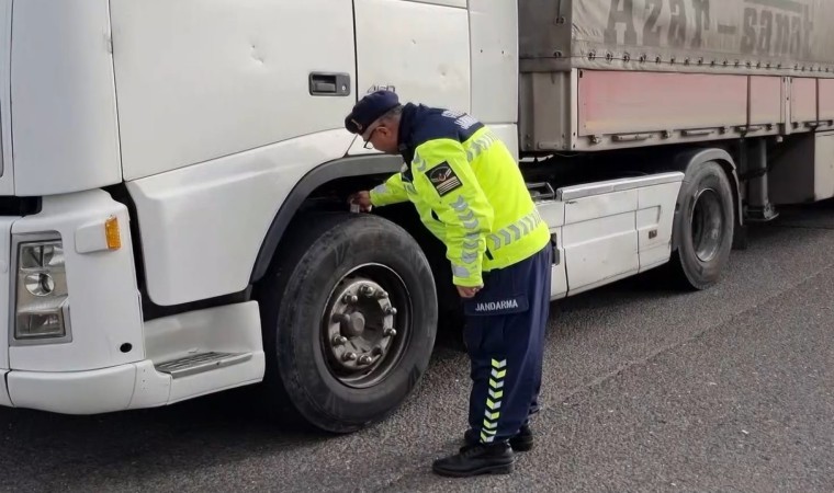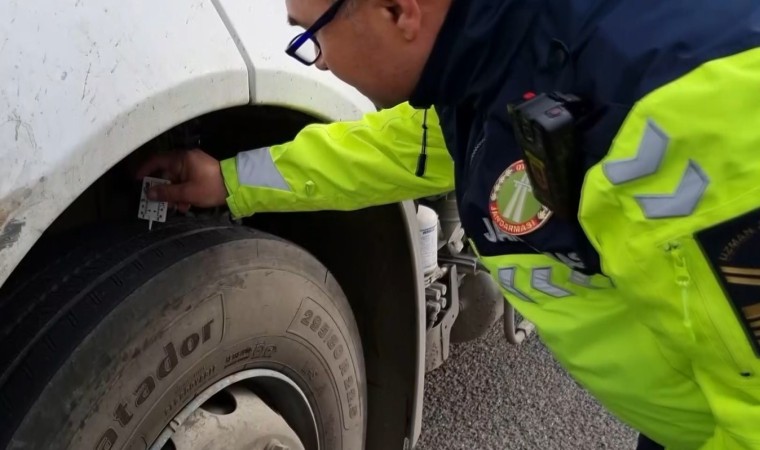 Denetim sırasında araç sürücülerine kusurlu lastik üzerinden bilgilendirme yapılarak, kış lastiği kullanımının can ve mal güvenliği açısından önemi anlatıldı.