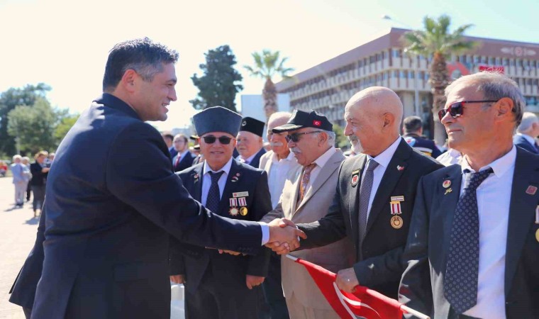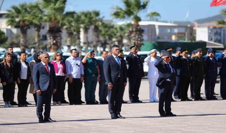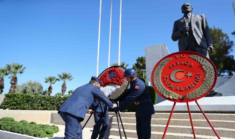 Törende, Aliağa Kaymakamı Zekeriya Güney, Aliağa Belediye Başkanı Serkan Acar, Garnizon Komutanı Albay Faruk Altun ve Gaziler adına Kıbrıs Gazisi İslam Doğan Kılıç Atatürk Anıtı’na çelenk sundu.