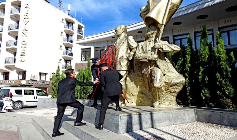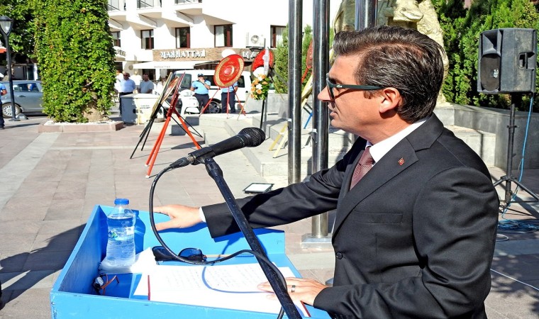 Cumhuriyet Meydanı’nda düzenlenen resmi törene Kaymakam Mehmet Maraşlı, Çeşme Belediye Başkanı Lal Denizli, protokol üyeleri, kurum amirleri, siyasi parti, oda ve sivil toplum kuruluşları temsilcileri, Belediye Meclis Üyeleri, gaziler ve vatandaşlar katıldı. Atatürk Anıtı’na çelenklerin sunulmasının ardından saygı duruşunda bulunularak, İstiklal Marşı eşliğinde göndere bayrak çekildi.