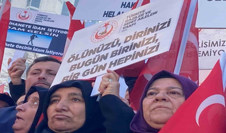 Şehit ve gazi yakınları protesto gösterisinde “Selahattin Demirtaş teröristtir”, “Vatana kurşun sıkanın sonu sarı torba” yazılı pankartlar açtı.