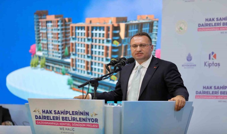 Programda konuşan İstanbul Büyükşehir Belediye Başkanı Ekrem İmamoğlu, “Gaziosmanpaşa Belediye Başkanı Hakan Bahçetepe’nin ve Kiptaş Ali Kurt’un ekibi ile beraber yaptıkları çalışmalarla bugün kuraları çekiyoruz. Eylül ayı itibariyle ilk teslimlerine başlayacaklar. Sizleri huzurlu yuvalarınıza kavuşturmayı istiyoruz. Bugün 718 bağımsız birim olan yani 687’si konut 28’i ticari birimi toparlamak üzereyiz” dedi.