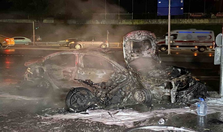 Gaziosmanpaşa’da ticari taksiyle motosiklet çarpıştı. Çarpışmanın etkisiyle motosiklette bulunan bir kişi, yol kenarındaki yeşil alanda bulunan ağacın üstüne uçtu, taksi ve motosiklet ise alev aldı. Çıkan yangında motosiklette bulunan ismi öğrenilemeyen bir kişi yanarak ağır yaralanırken ağacın üstüne uçan ve orada asılı kalan Bertan Darıcı (20) ise hayatını kaybetti.