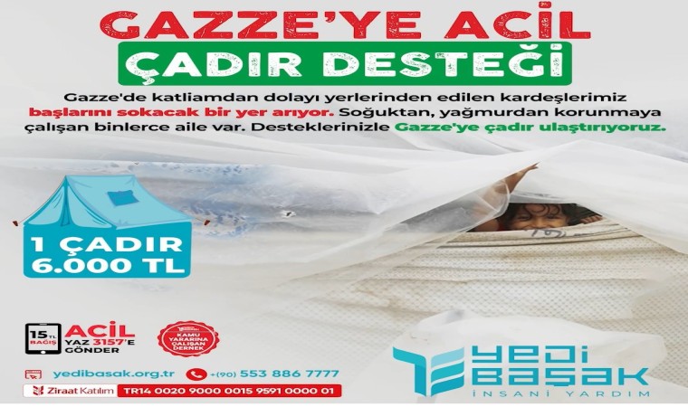 Yedi Başak İnsani Yardım Derneği İsrail’in Gazze’deki saldırıları sonucu evlerinden olan insanlar için acil bir şekilde ulaştırılması için ’Çadır Kampanyası’ başlattı.
