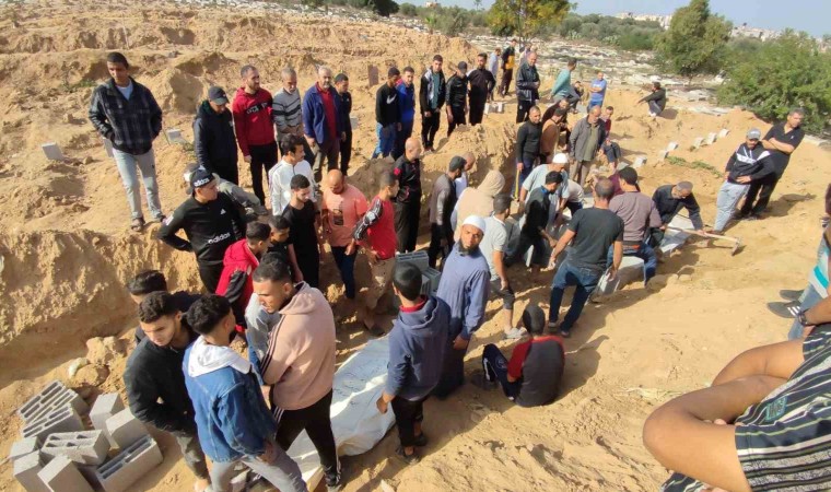 İsrail’in Gazze Şeridi’ne yönelik saldırıları devam ederken, bilanço her geçen gün ağırlaşıyor. Gazze Şeridi’ndeki Filistinliler bir yandan hayatta kalmaya çalışırken bir yandan da kaybettikleri yakınlarını toplu mezar kazarak defnediyor. Onlarca Filistinli bugün, İsrail saldırılarında kaybettikleri yakınları için Maghazi ve Bureij mülteci kampları arasındaki bölgede cenaze töreni düzenledi. Törendekiler gözyaşlarına hakim olamazken, cenazeler kazılan toplu mezarda yan yana defnedildi.