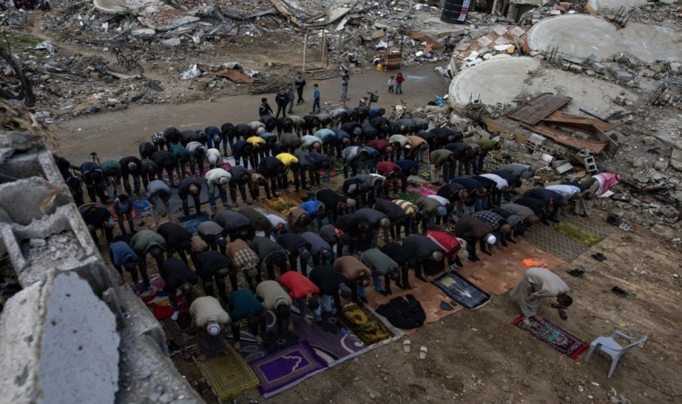 İsrail ile Hamas arasında varılan ateşkes anlaşmasının yürürlüğe girmesiyle Filistinliler nefes aldı. Ateşkesin ardından büyük mutluluk yaşan Filistinliler, bugün uzun bir zaman sonra İsrail savaş uçaklarının bıraktığı bombaların sesini duymadan camilere akın etti. Gazze Şeridi’nin merkezindeki Deir el-Balah kentinde Maghazi Mülteci Kampı’ndaki Filistinliler, El Huda Camii’nde ateşkesin yürürlüğe girmesinin ardından ilk cuma namazına katıldı. İsrail saldırılarında enkaza dönen camide serilen halı, örtü ve seccadelerin üstünde namazını kılan siviller, edilen duanın ardından cemaat şeklinde El Huda Camii’nden ayrıldı.