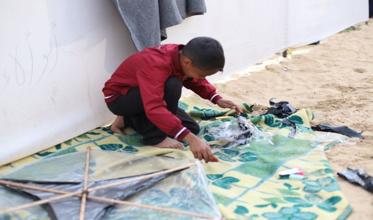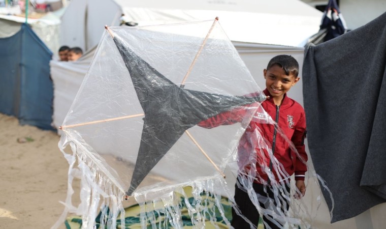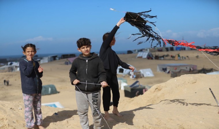 Gazze Şeridi’nde yaşayan çocuklar, İsrail’in saldırılarının neden olduğu acıları ve zor şartları uçurtma uçurarak unutmaya çalışıyor.