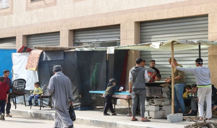 İsrail’in Gazze Şeridi’ne düzenlediği saldırılarda yerle bir olan kentin en eski restoranının çalışanları, zor şartlar altında tezgah açarak hizmet vermeye çalışıyor.