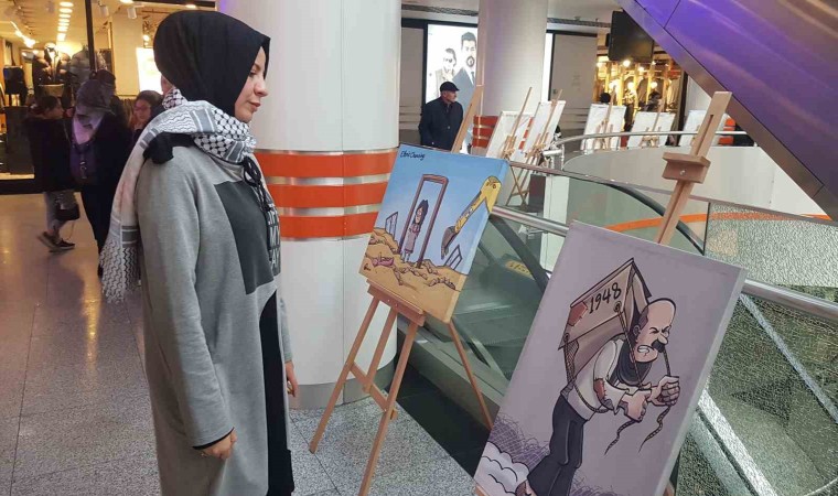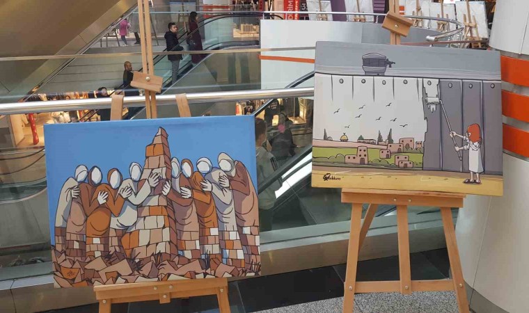 İsrail’in Gazze’deki katliamlarına dikkat çekmek amacıyla Karabük’teki alışveriş merkezinde resim ve karikatür sergisi açıldı.