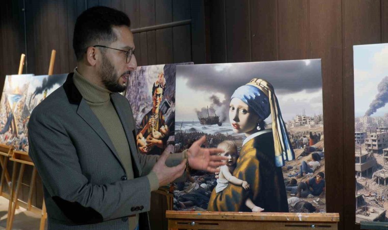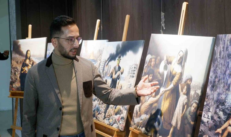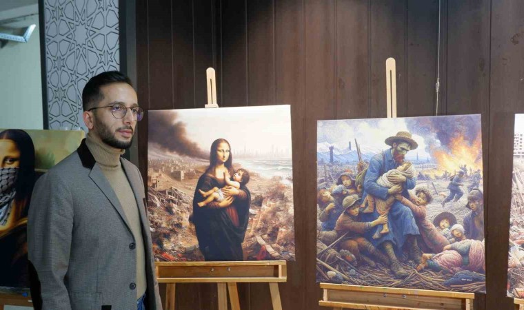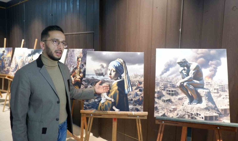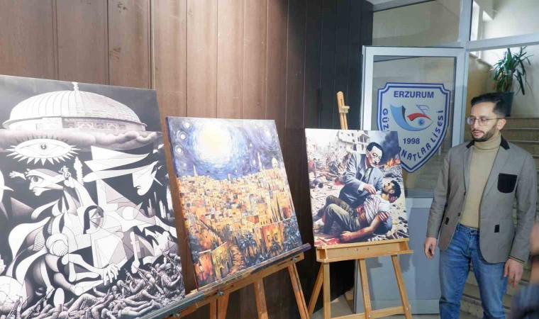 Erzurum Raci Alkır Güzel Sanatlar Lisesi Görsel Sanatlar Öğretmeni Yakup Dursun, İsrail’in Gazze’de uyguladığı soykırıma dikkat çekmek için dünyaca ünlü ressamların eserlerini yeniden tasarladı.