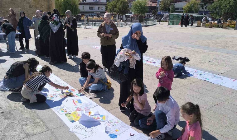 Cacabey meydanında düzenlenen etkinlikte Filistin’de ve dünyanın farklı coğrafyalarında yaşayan çocukların yaşadıkları dikkat çekildi. Filistin bayrakları ve Filistin’de yaşananların resmedildiği programda katılımcılar, savaş bölgelerinde yaşananları kendi bakış açılarına göre resmederek duygularını iletti. Kudüs Platformu adına konuşan İhsan Buğday, "Gazze’de başlatılan soykırımda birinci yıl doldu. Psikolojik şiddete maruz kalmayan çocuk yok. Her çocuk fiziksel ve duygusal sömürüden azat olmalıdır” dedi. Çocukların tehlikelerden uzak kalması gerektiğini aktaran Buğday; "Bölge halkının yüzde 2’lik bölümü hayatta değil. Çocuklara sunulan hakların tamamı işgalcilerin postalları altında ezilmekte, anne karnındaki çocuklara dahi soykırım yapılmakta. Her çocuk sağlık ve sosyal imkanlarından faydalanıyor olmalıdır. Çocuklar, özgüvenli olmalıdır. Filistin ve dünyanın birçok bölgesinde çocuklar haklarından mahrum durumdalar. İsrail ve yandaşlarına karşı daha ciddi boykot uygulamaları yapmak zorundayız” diye konuştu.
