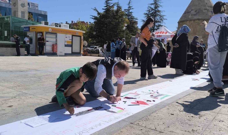 KIRŞEHİR (İHA) – Kırşehir’de Kudüs Platformu üyeleri; Gazze’de yaşayan çocuklara destek olmak ve yaşadıkları dramı göstermek adına ’resim çiz’ etkinliği düzenledi.