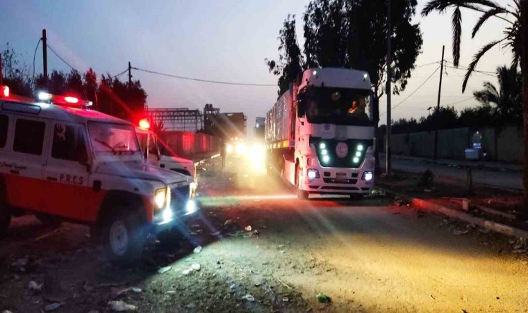 İsrail ve Filistin arasındaki insani ara çerçevesinde Refah Sınır Kapısı’ndan geçen 100 yardım tırı Gazze Şeridi’nin kuzeyine ulaştı.