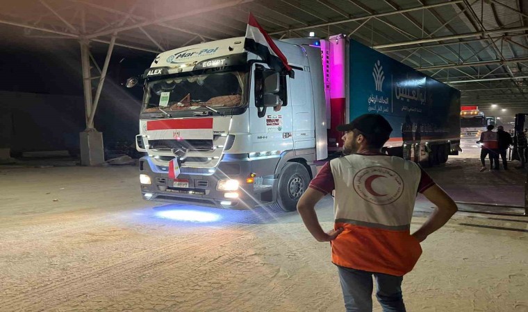 İsrail saldırısı ve ablukası altındaki Gazze Şeridi’ne 8 tırdan oluşan 4. yardım konvoyu, Mısır sınırındaki Refah Sınır Kapısı’ndan giriş yaptı.