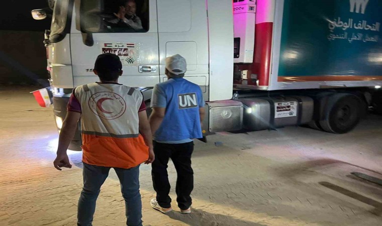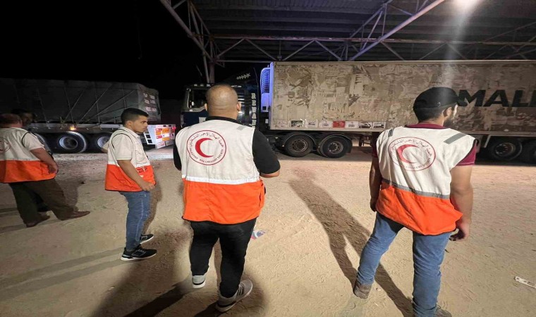 Filistin Kızılayı’ndan gece saatlerinde yapılan açıklamada, 8 tır malzemenin Mısır Kızılayı’ndan teslim alındığı duyuruldu. Açıklamada, tırlardan 5’inin su, 2’sinin gıda, 1’inin de ilaç taşıdığı ifade edildi.