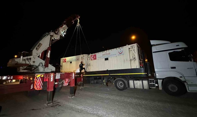 İçerisinde tıbbi malzeme ve cihazların bulunduğu 3 adet konteyner şeklinde sahra hastanesi, Filistin’e ulaştırılmak üzere Samsun’dan yola çıktı.