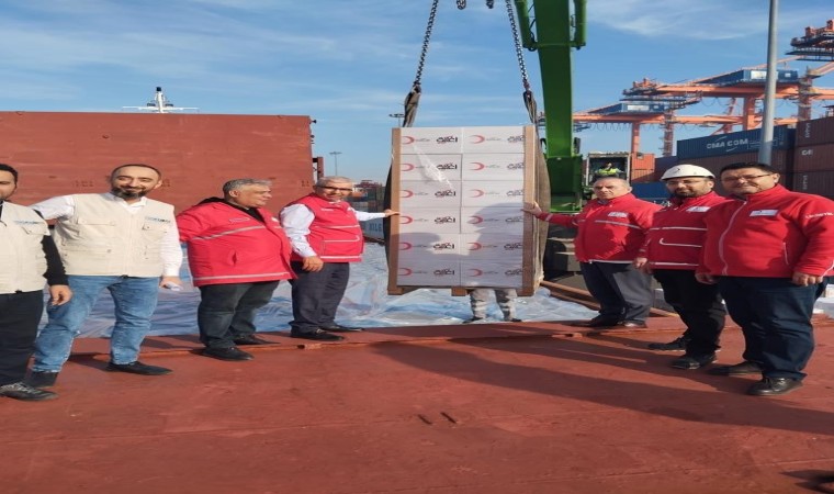 Türk Kızılay’ı tarafından toplanan yardım Gazze’ye ulaşmak üzere gemiyle Mersin limanından hareket etti.