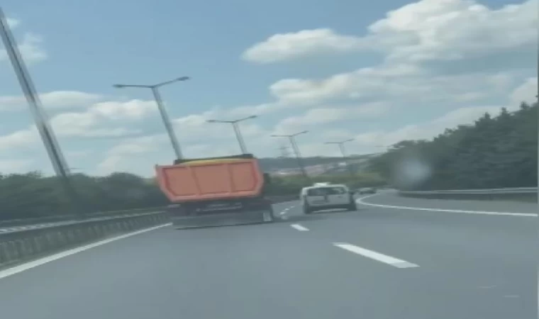 İstanbul'dan Gebze'ye doğru seyir halindeki bir hafriyat kamyonu ve önündeki hafif ticari araç arasındaki tehlikeli inatlaşma kamera tarafından kaydedildi.