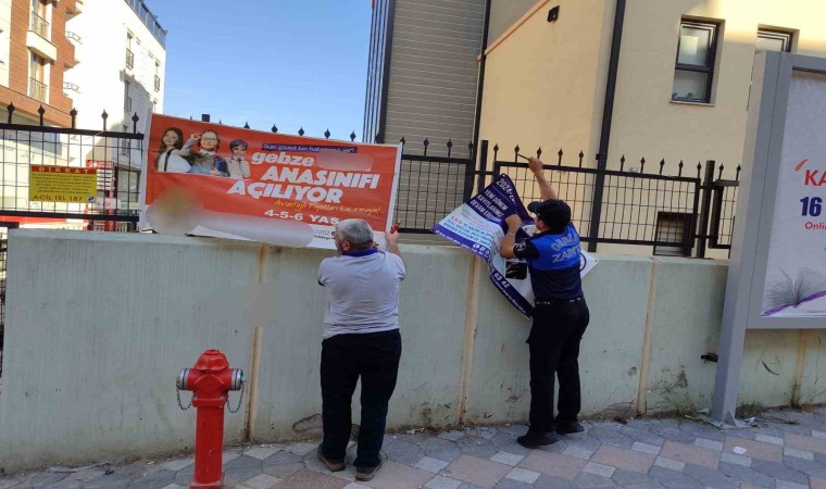 Gebze’de zabıta ekipleri, ilçe genelinde izinsiz asılan afiş ve pankartlara yönelik çalışma başlattı.