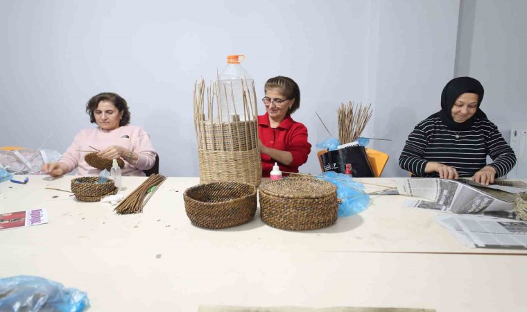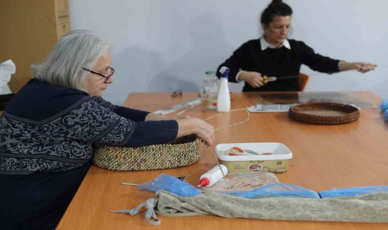 Güzel Sanatlar ve Meslek Eğitimi Kursları’nda eğitim gören kursiyerler, atık kağıtları sepet, çanta, supla gibi ürünlere dönüştürerek birinden farklı sanat eseri ortaya koyuyor.