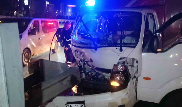 Kocaeli’nin Gebze ilçesinde kontrolden çıkan kamyonet, yol ayrımındaki bariyere saplandı. Kamyonette sıkışan yolcu, itfaiye ekiplerince araçtan çıkartılarak hastaneye kaldırıldı.