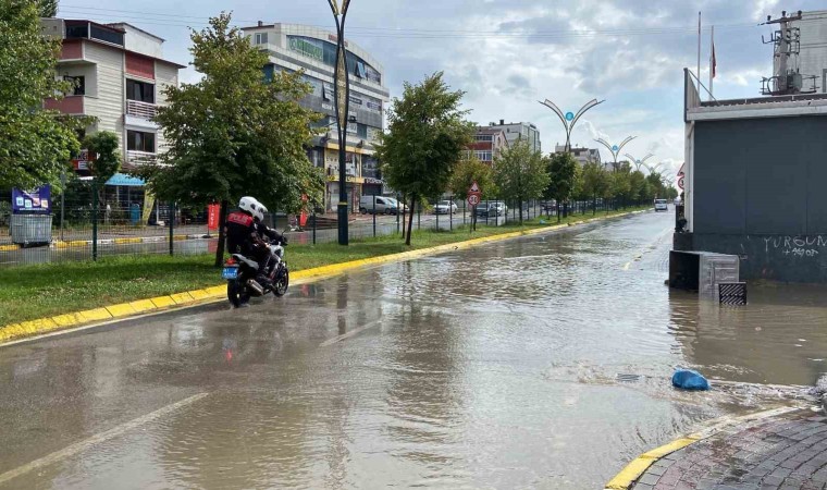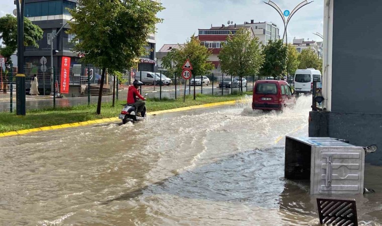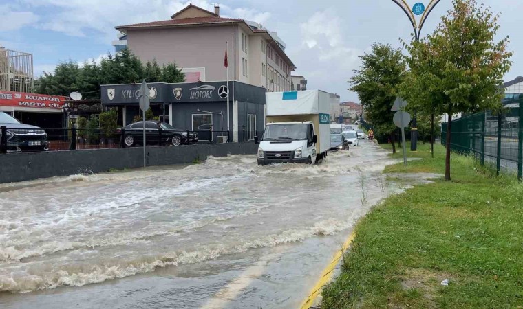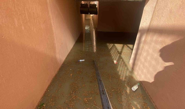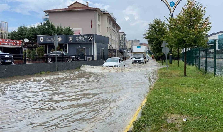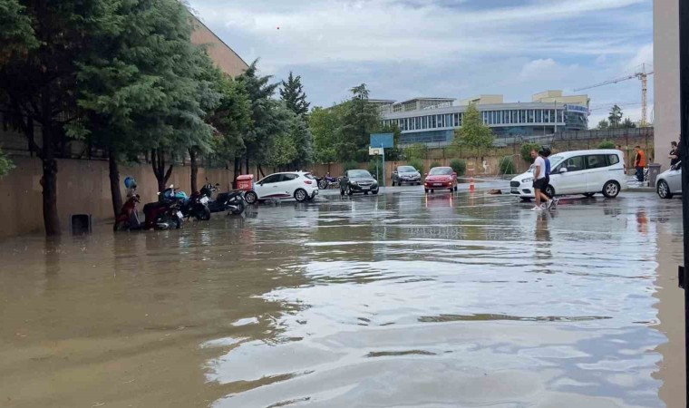 Kocaeli’nin Gebze ilçesinde sağanak etkili oldu. Sularda kalan plakalar tellere asıldı.