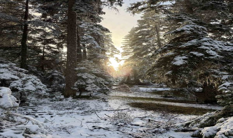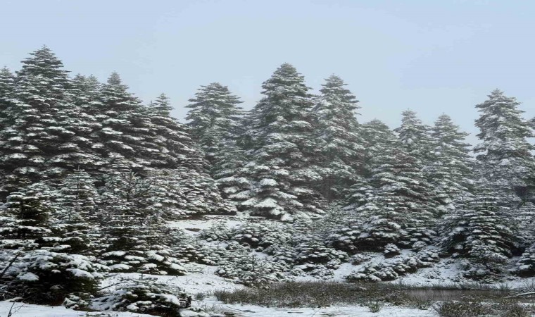 BOLU (İHA) – Bolu’nun yüksek kesimlerinde aralıklarla etkili kar yağışı sebebiyle Yedigöller Milli Parkı’na yakın yaylalarda kar kalınlığı 5 santimetreye yaklaştı. Bembeyaz örtüyle kaplanan çam ağaçları günün ilk ışıklarıyla görüntülendi.