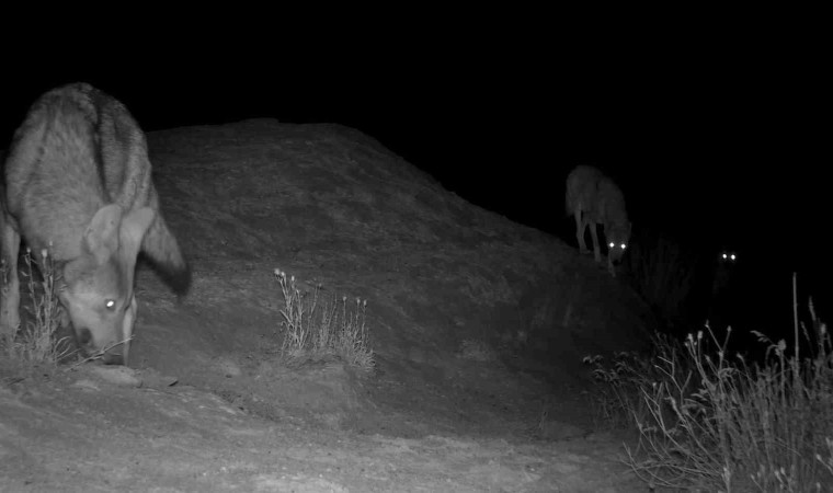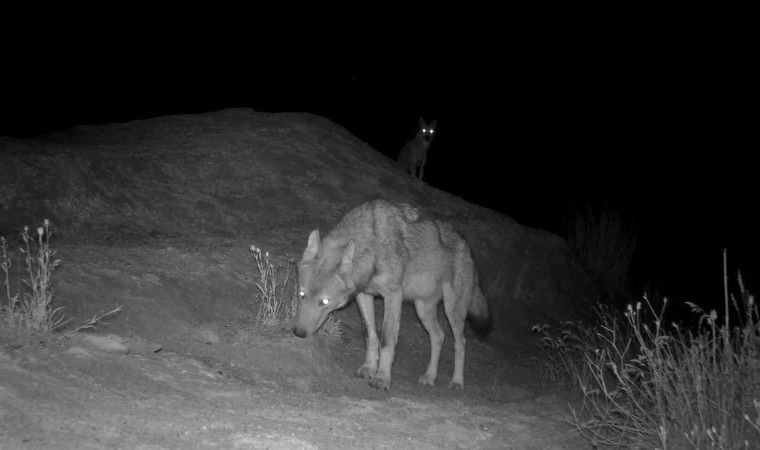 Sivas’ta yaşayan doğa fotoğrafçısı Mustafa Aslan, kırsal alanlara yerleştirdiği fotokapan ile kurt sürüsü görüntüledi, kurtların gece karanlığında parlayan gözleri tüyleri ürpertti.